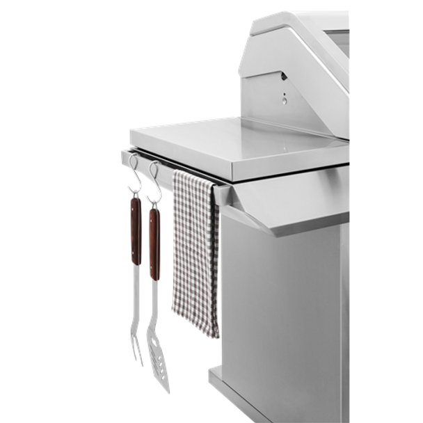 - Full width stainless steel catchment tray, positioned at the front of the BBQ on Telescopic rails