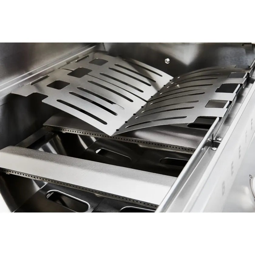 • Durable, flexible and efficient - With cast stainless burners and stainless-steel vaporisers, you have one of the most durable, flexible and efficient cooking systems available. Cast stainless heats quickly, maintains consistency and lasts a very long time. With 17MJ of power in each burner, sear steaks at high heat, or turn the power down, giving you the choice in what you cook and how you cook it. And the dual stainless-steel vaporisers efficiently disperse the flames across the grill and plate surfaces whilst reducing those flare ups.