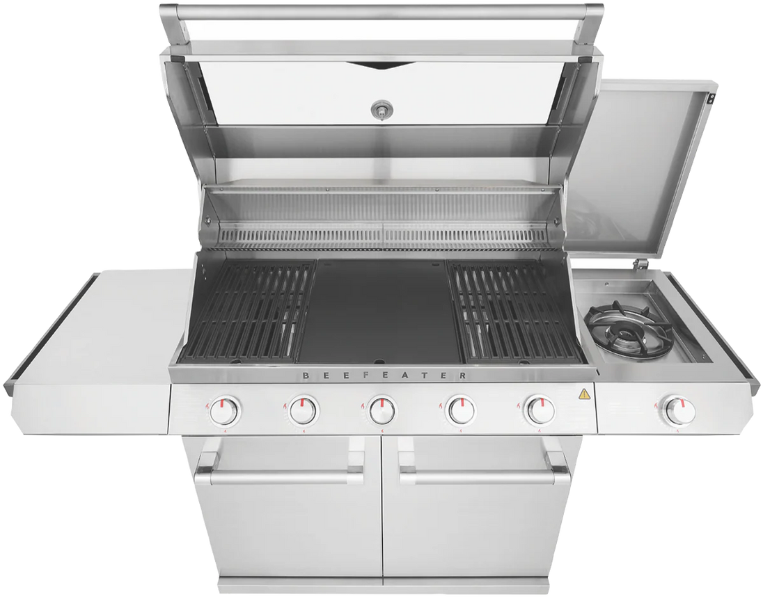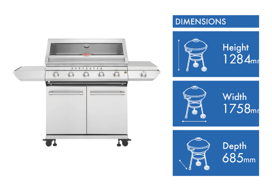 This freestanding BeefEater Signature 7000 Classic 5B BBQ gives you serious outdoor cooking power with its spacious 448000mm total cooking area. Perfect for family gatherings, the stainless steel construction offers durability you can count on season after season. The 304 grade stainless steel finish not only looks great but stands up to the elements, while lockable castors make it easy to position your BBQ exactly where you need it. With dimensions of 1284mm height, 1758mm width and 685mm depth, this substantial 132kg BBQ comes with a sturdy trolley for convenient storage and mobility. Backed by a 1-year manufacturer's warranty, the BMG7652SA is built to deliver reliable outdoor cooking performance.