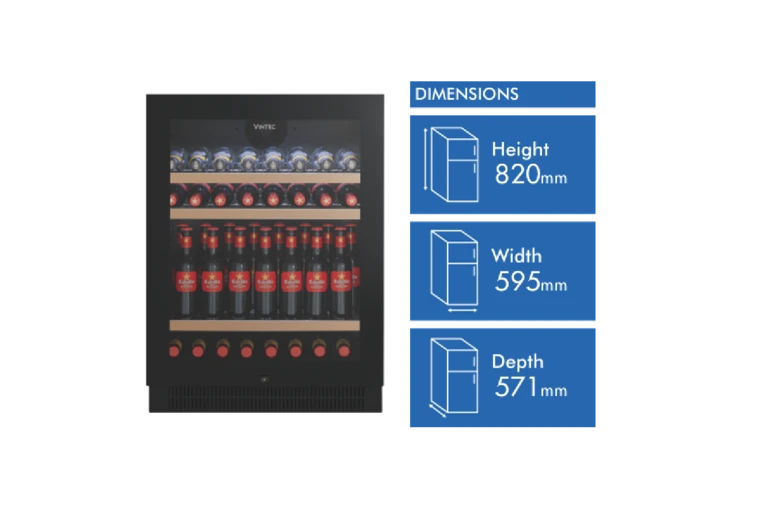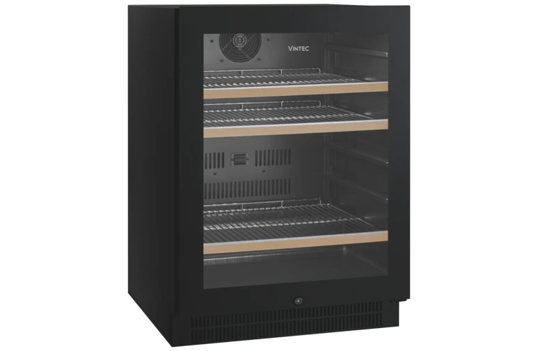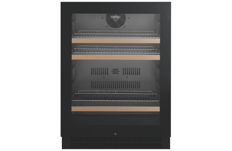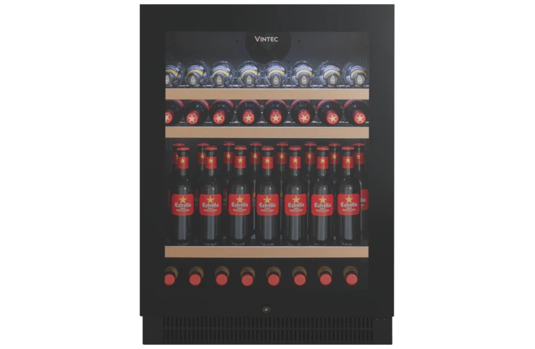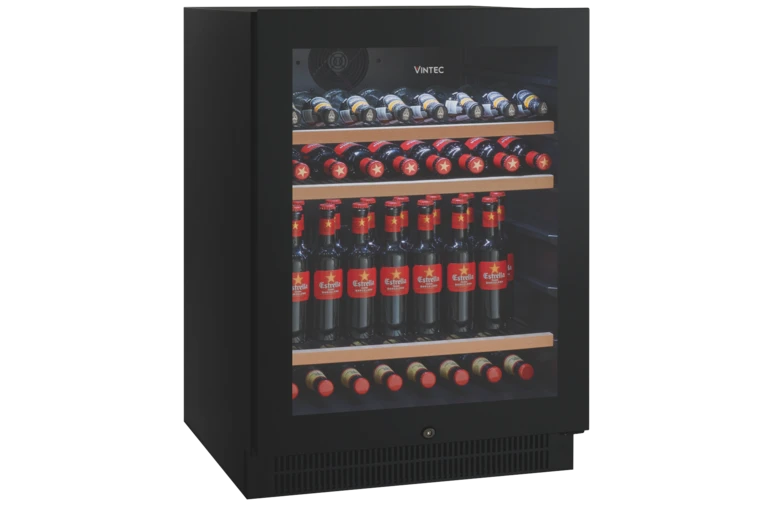The Vintec (VBS050SBB-X) 100 Bottle Beverage Centre provides a luxury and premium experience to store and demonstrate your wine, beer or spirit collection. The internal cabin keeps all your beer cold at 2-5 degrees, while chilling Champagnes and white wines for easy serving. Demonstrate your collection with the internal LED lighting which brightens up to see all your favourite beverages. The digital temperature display always keeps you aware of what cool or chilled your drinks are. The adjustable shelving layout and reversible beverage centre door provides a range of customising to suit your catering and personal taste. Safety around alcohol is an important factor especially within the household; the installed security lock prevents unwanted mishaps from occurring when trying to access the Vintec 100 Bottle Beverage Centre. Keep your alcohol and drinks tasting great and storage life high by the inclusion of the triple glazed door and anti-UV glass that prevents the sun damaging your favourite drinks