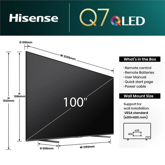 Hisense 100" Q7NAU 4K QLED Smart TV [2024] 100Q7NAU