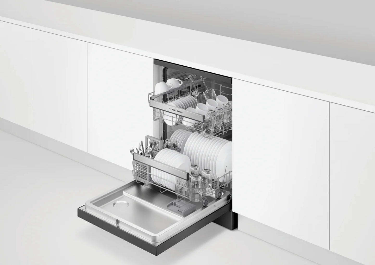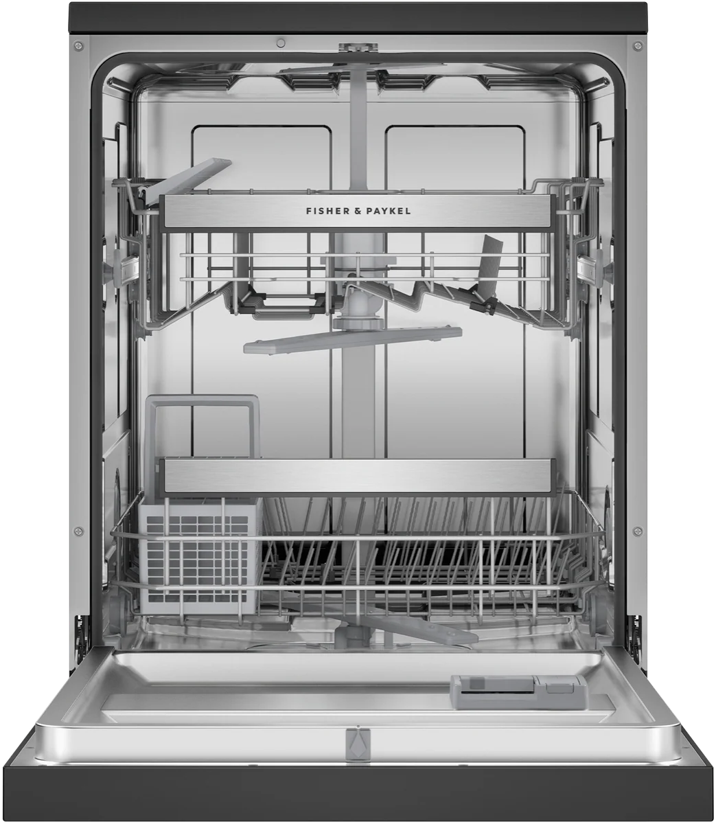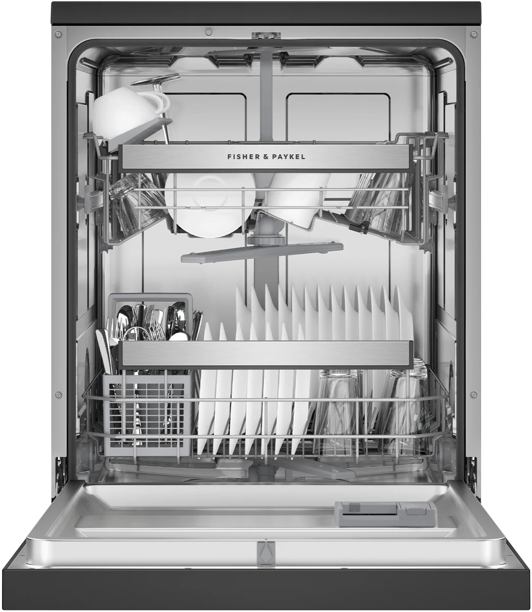 Designed to fit 15 place settings with ease, adjustable racks help you to load and care for various items – including a height-adjustable upper basket, and foldable cup holders and tines.