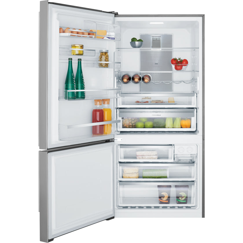 | Description | 596L natural stainless steel bottom mount refrigerator featuring a TasteLock Easy-glide crisper, 4.5 star energy efficiency and a mark resistant real stainless steel finish. |