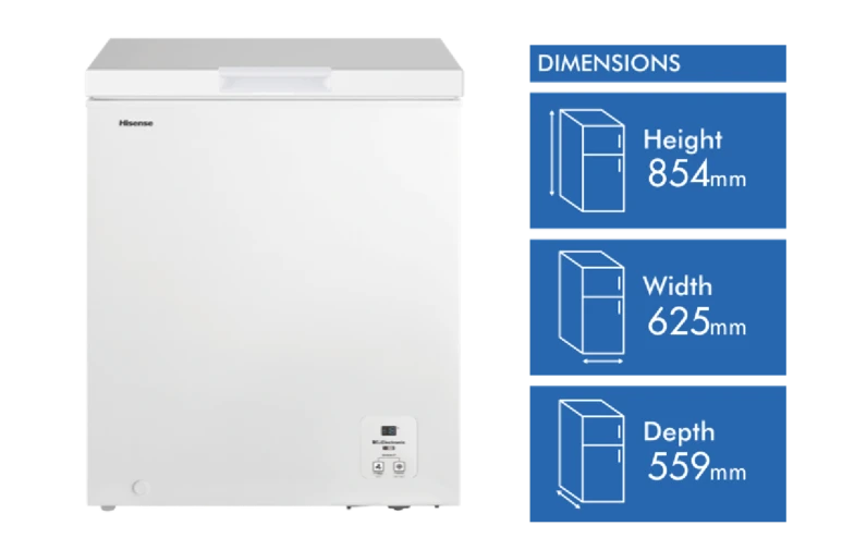 Introducing the Hisense 145L Hybrid Chest Freezer (HRCF146), the versatile appliance that adapts to your changing needs. Imagine the convenience of switching between a freezer and fridge with ease, thanks to this innovative hybrid design. The boundless door is a breeze to clean, while the ultrathin hinges save valuable space in your kitchen. You'll love the hands-free, self-standing door that stays open without any effort. The adjustable thermostat puts you in control, and the convenient water drain makes maintenance a snap. With a movable wire basket, organizing your food is simple and efficient. Boasting an impressive 6-star energy rating, this 625mm wide, 854mm high, and 559mm deep chest freezer is not only stylish in white, but also eco-friendly. Experience the peace of mind that comes with Hisense's 3-year manufacturer's warranty. Upgrade your kitchen with the Hisense 145L Hybrid Chest Freezer (HRCF146) and enjoy unparalleled flexibility and convenience.