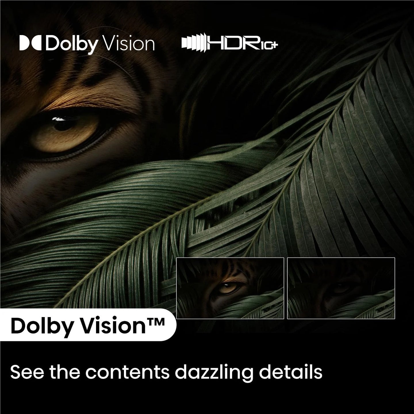 Dolby Atmos® brings the missing layer of depth to TV audio, typically reserved for theatres. Leveraging technologies trusted by directors and sound mixers, this feature crafts a multi-dimensional sound environment right in your living room. Immerse yourself in spectacular entertainment with unmatched sound clarity and depth, all without extra equipment.