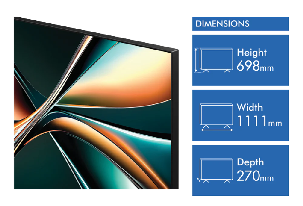 This 50" Hisense Mini LED TV brings movies and games to life with stunning 4K resolution and vibrant Quantum Dot Technology. The Mini-LED screen delivers impressive brightness up to 900 nits with HDR10+ support, so you'll see incredible detail even in bright rooms. Gaming feels smoother thanks to the 144Hz refresh rate and Motion Rate 240, perfect for fast-paced action. Sound comes through clearly with the powerful 2x10W + 20W speaker system and Dolby Atmos for immersive audio. The smart VIDAA U8.5 operating system makes finding your favorite content easy, while Bluetooth 5.0 lets you connect headphones or speakers wirelessly. At just 78mm thin without the stand, it looks sleek mounted on your wall (VESA 300 x 200mm). Comes with a 3 year warranty. Model 50U6QAU PRO.