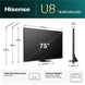 Solar RemoteEco-conscious control at your fingertipsWith the Solar Remote, you’ll never need to change batteries again! Its built-in solar panel and USB-C charging port keep you powered up, making it the eco-friendly, hassle-free way to take control.SpecificationsBarcode (GTIN) 9337640032544 Product Type Mini LED TVs TV Type Smart TVs Brand Hisense Model 75U8QAU TV Model U8QAU Range New 2025 Range Colour Black Screen Size (inches) 75 Screen Definition 4K Screen Resolution 3840 x 2160 Screen Refresh Rate 165Hz No. HDMI Ports 3 No. USB Ports 2 Connectivity Ethernet Built-In Tuner DVB-T, DVB-T2 Built-in Decoders Dolby Atmos Total Output Power (RMS) 15W Number of Speakers Included 0 Power Consumption Sleep / Stand By 0.5W Energy Efficiency 4.5 Stars Product Width (cm) 196.5 Product Depth (cm) 18.8 Product Height (cm) 117.5 Weight (kg) 52.5 Manufacturers Express Warranty (months) 36