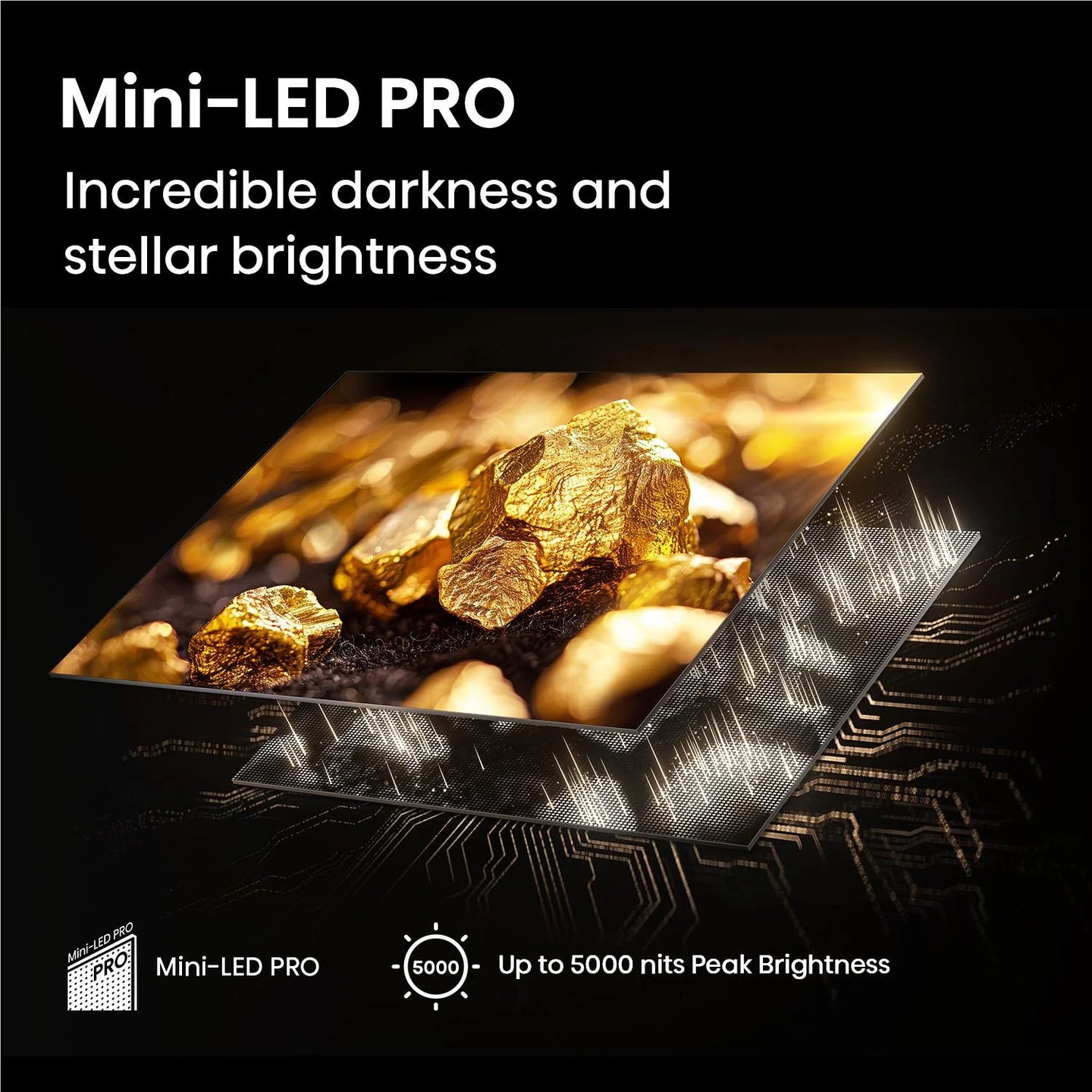 - Mini-LED PRO brings incredible contrast and stunning brightness, making every frame pop. With precise backlight control, you’ll catch every detail, whether it's deep in the shadows or in the brightest highlights.