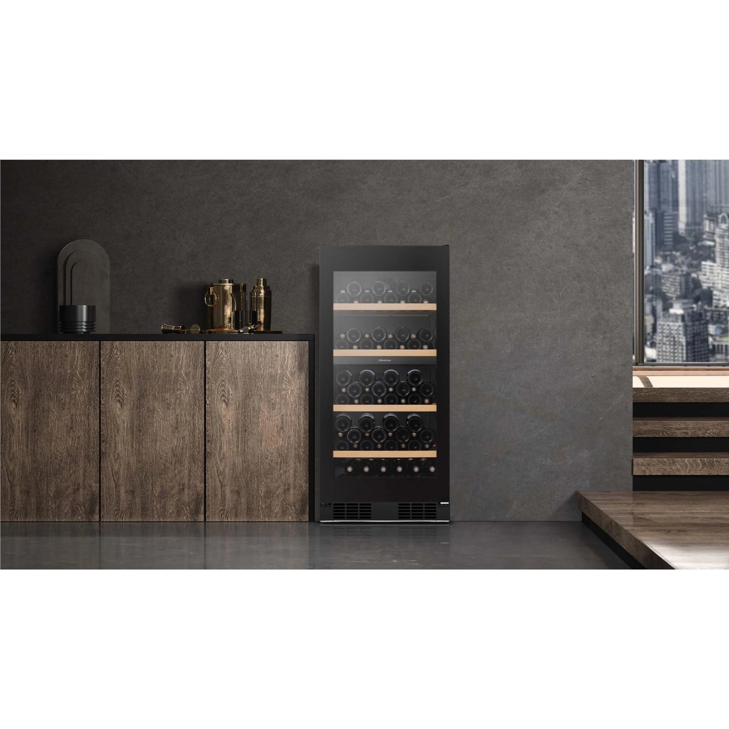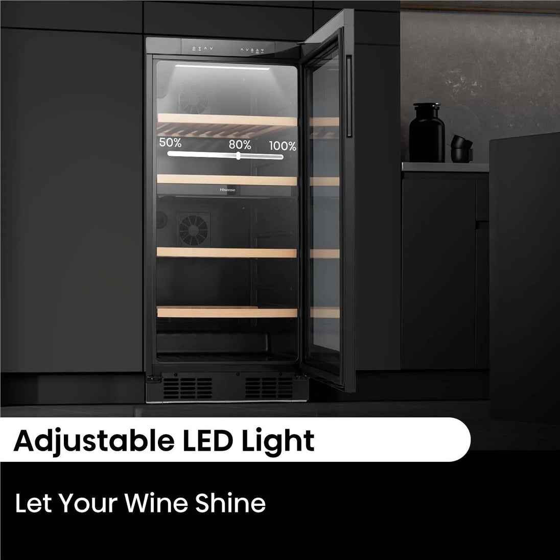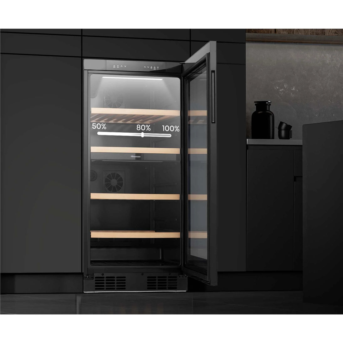 Hisense 108-bottle wine cooler has a sleek and modern design with stainless steel door frame and handle. Its triple glazed glass stores your favourite wine at the perfect temperature. Dual temp zone lets you control the upper and lower zones independently, ranging from a refreshing 5°C to a cozy 20°C. The wine cooler can be installed for built-in applications or as a freestanding model. The reversible door design allows for flexible installation and placement.