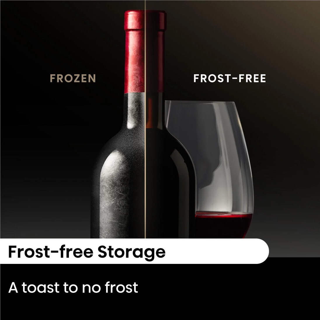 Our wine cooler utilises modern technology to prevent the formation of ice and frost, ensuring that your wine is always stored at the optimal temperature. Fans and heating components circulate cold air, maintaining stable conditions. This preserves the flavour, aroma, and body of your wine intact for longer, enabling you to relish it at its finest without the inconvenience of defrosting.