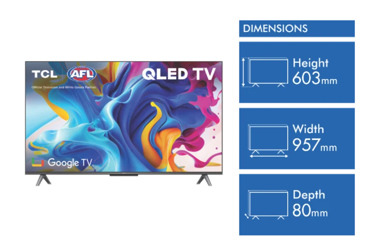 Step into an immersive viewing experience with the new TCL 43" C645 QLED Google TV. This 2023 release ultra high definition TV packs a vivid QLED 4K display into a sleek, modern design perfect for smaller spaces. With a stunning 3840 x 2160 resolution on the 43" screen, every scene springs to life in incredible clarity and rich, accurate color thanks to TCL's Wide Color Gamut technology. Whether you're watching the latest blockbuster or your favorite TV series, the advanced AiPQ Engine processor optimizes performance for smooth motion and incredible depth through features like Micro Dimming and Dolby Vision HDR. And with Dolby Atmos sound, be transported right into the action with three-dimensional audio that fills the room. This smart TV keeps you connected with quick access to all your favorite streaming apps like Netflix, Stan, and YouTube through the intuitive Google TV platform. Control it all easily with your voice via built-in Google Assistant and Amazon Alexa. For avid gamers, Auto Game Mode ensures fast response times and smooth graphics. With three HDMI inputs and a three-year manufacturer's warranty, the TCL 43" C645 QLED TV delivers an unbeatable entertainment experience. The manufacturer's part number for this product is 43C645. Learn more about this QLED TV's brilliant display and smart connectivity features today.