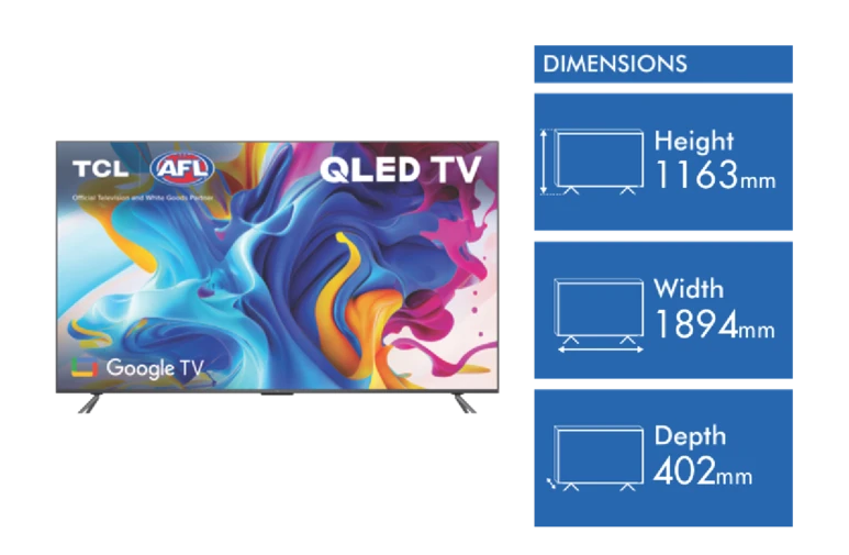| What's In The Box: | TCL 85" C645 QLED Google TV 23, included accessories, user manuals - Remote Control, Remote Control Battery 2 x AAA (included), Quick Start Guide, Warranty Card, User Manual |