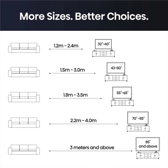 We also have multiple sizes, screen resolutions, screen types, and operating systems for you to choose from. There are Android TVs, 8K resolutions, and 100-inch TVs available as well.