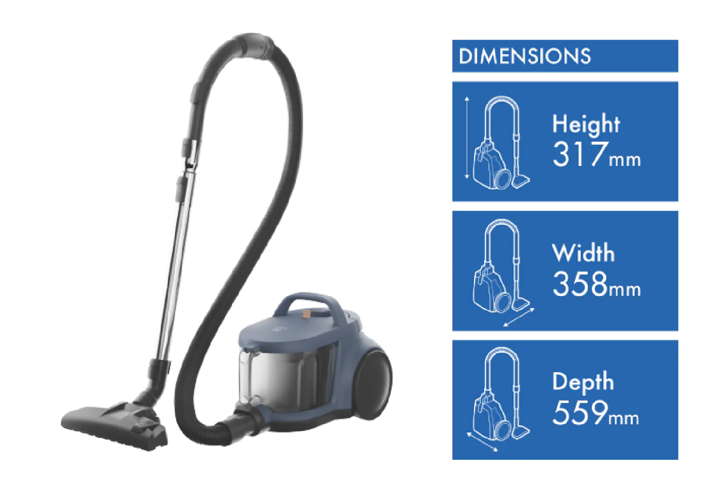 - Bagless Design: Easy-to-empty dust container for hassle-free maintenance