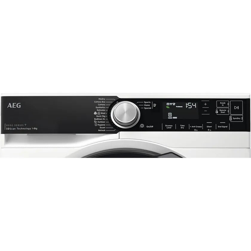 Featuring a high-capacity design and various drying programs, the AEG 8kg 8000 Series 3D-Scan Heat Pump Dryer is an ideal solution for effectively drying your freshly laundered clothes.