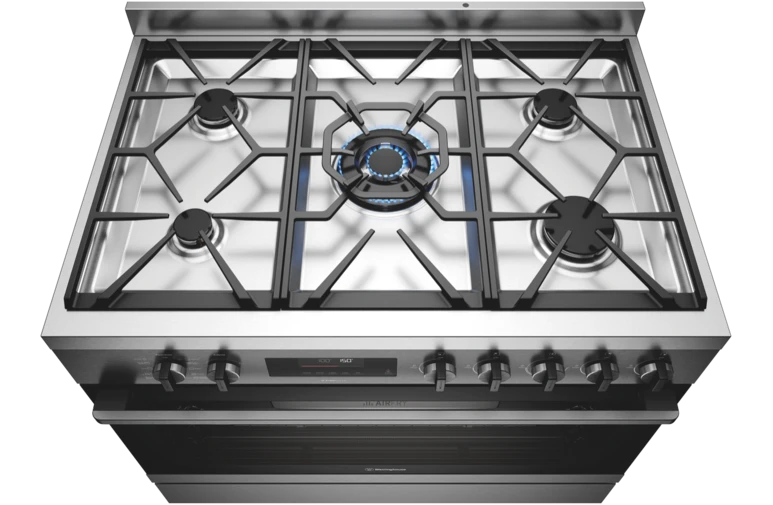 Bring restaurant quality cooking into your home with the Westinghouse 90cm Dual Fuel Pyrolytic Steam Freestanding Cooker WFEP9717DD. With its spacious 116L capacity, five gas burners, and ten versatile oven functions including AirFry, this freestanding cooker makes cooking for the whole family effortless. The stylish dark stainless steel finish and sleek touch controls give your kitchen a modern look. Whip up perfect roasts, crisp fries, and mouthwatering cakes with the AirFry function that uses superheated air for quick, healthy meals. The PyroClean technology breaks down food residue at high temperatures for easy oven cleaning between uses. With a durable build, twin cooling fans for even baking, and a 2-year warranty, the Westinghouse 90cm cooker WFEP9717DD brings professional performance into your home. The manufacturer's part number for this product is WFEP9717DD. Give your kitchen a powerful upgrade with the Westinghouse freestanding cooker today.