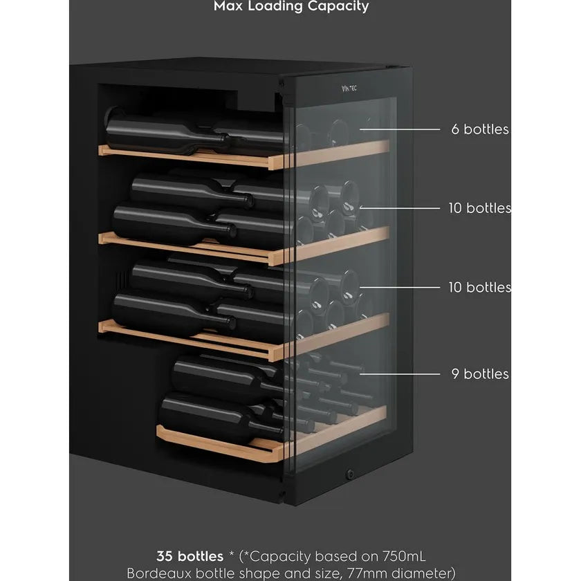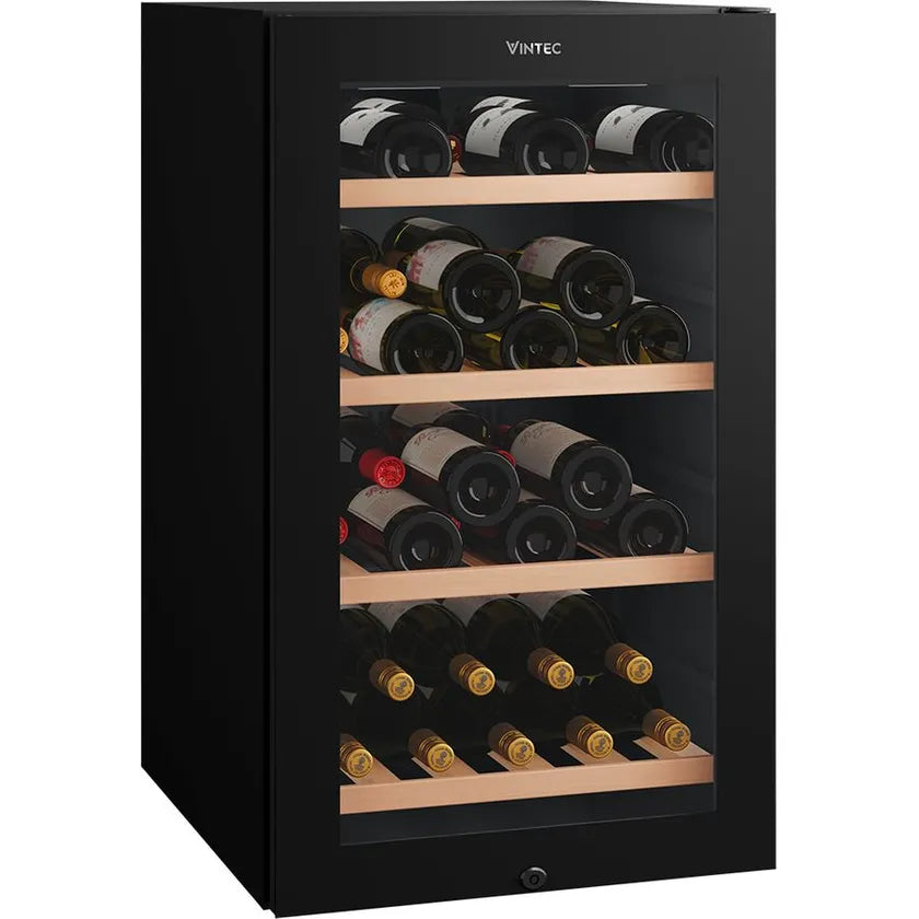 Enhance your wine storage with the Vintec 35 Bottle Single Zone Wine Cabinet. It offers optimal preservation for up to 35 Bordeaux-style bottles, with user-friendly controls and premium features that protect your collection.