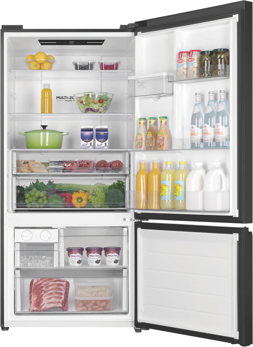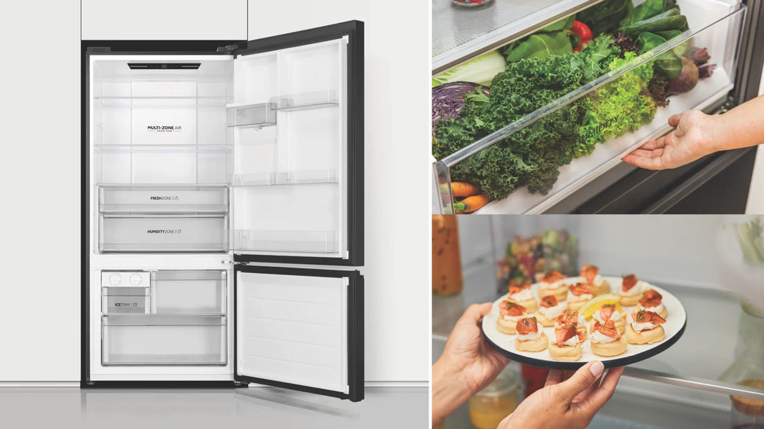 - Humidity Zone drawer and separate storage bin for more fresh food flexibility, Chilled water with an easy-to-refill non-plumbed dispenser, Super Freeze function,