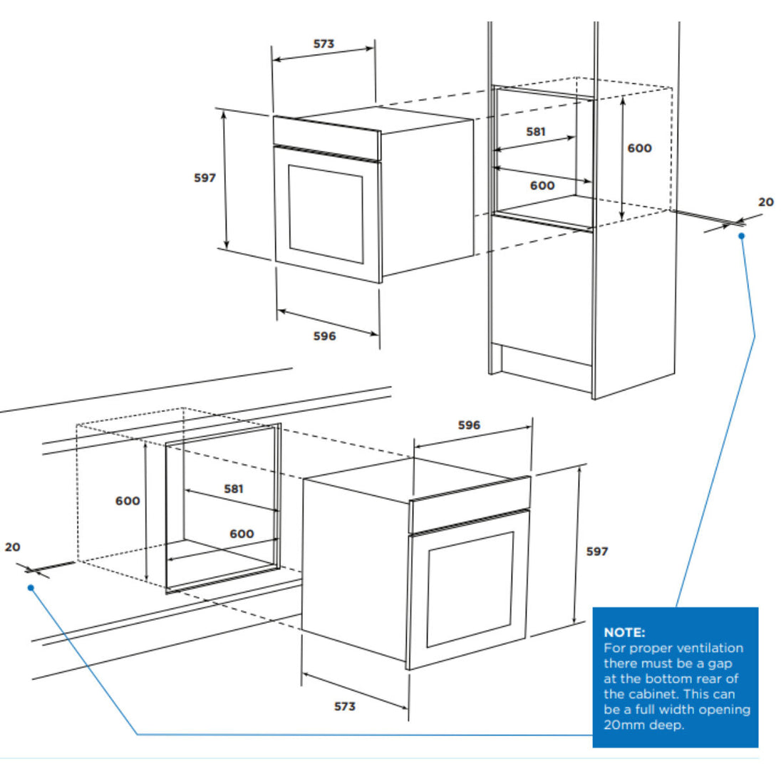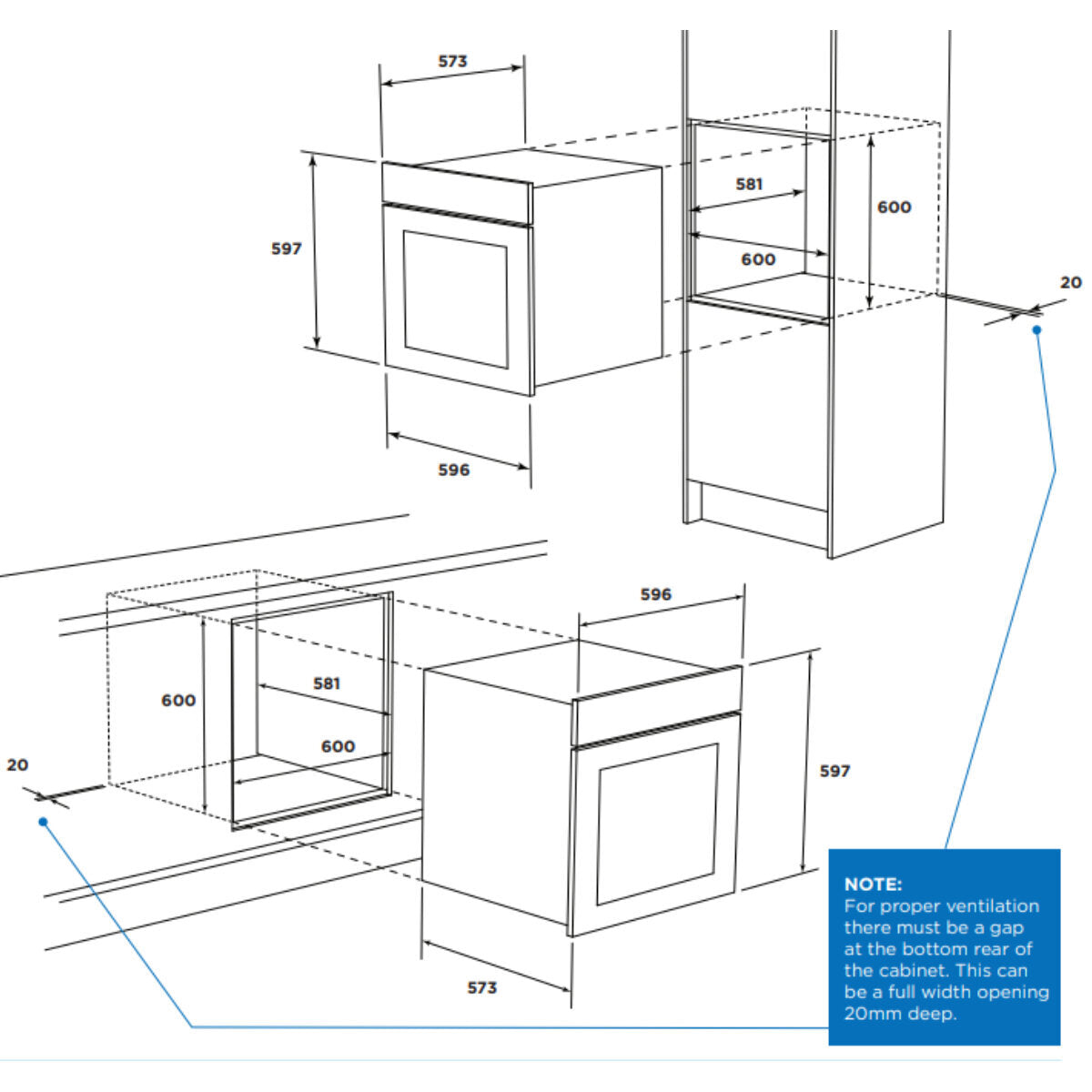- Multi-layer glazed door remains cool to the touch even when the oven is hot